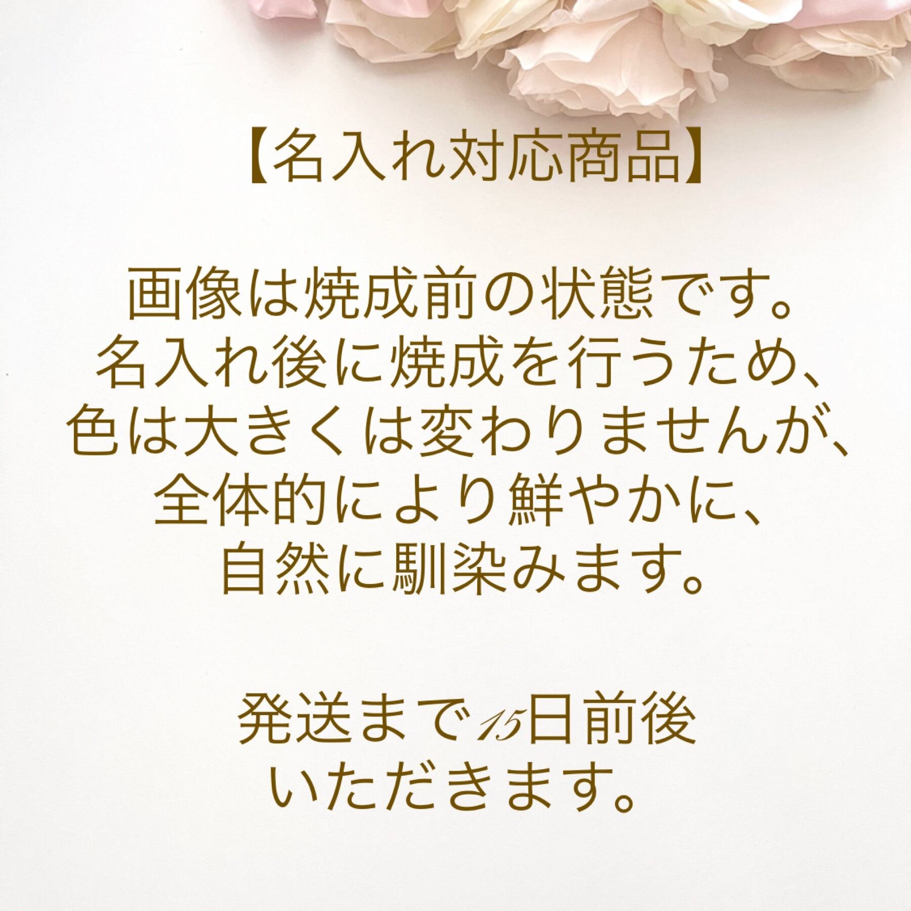 ◆画像は焼成前の状態です。 名入れ後に焼成を行うため ・色は大きくは変わりませんが、全体的により鮮やかに、自然に馴染みます