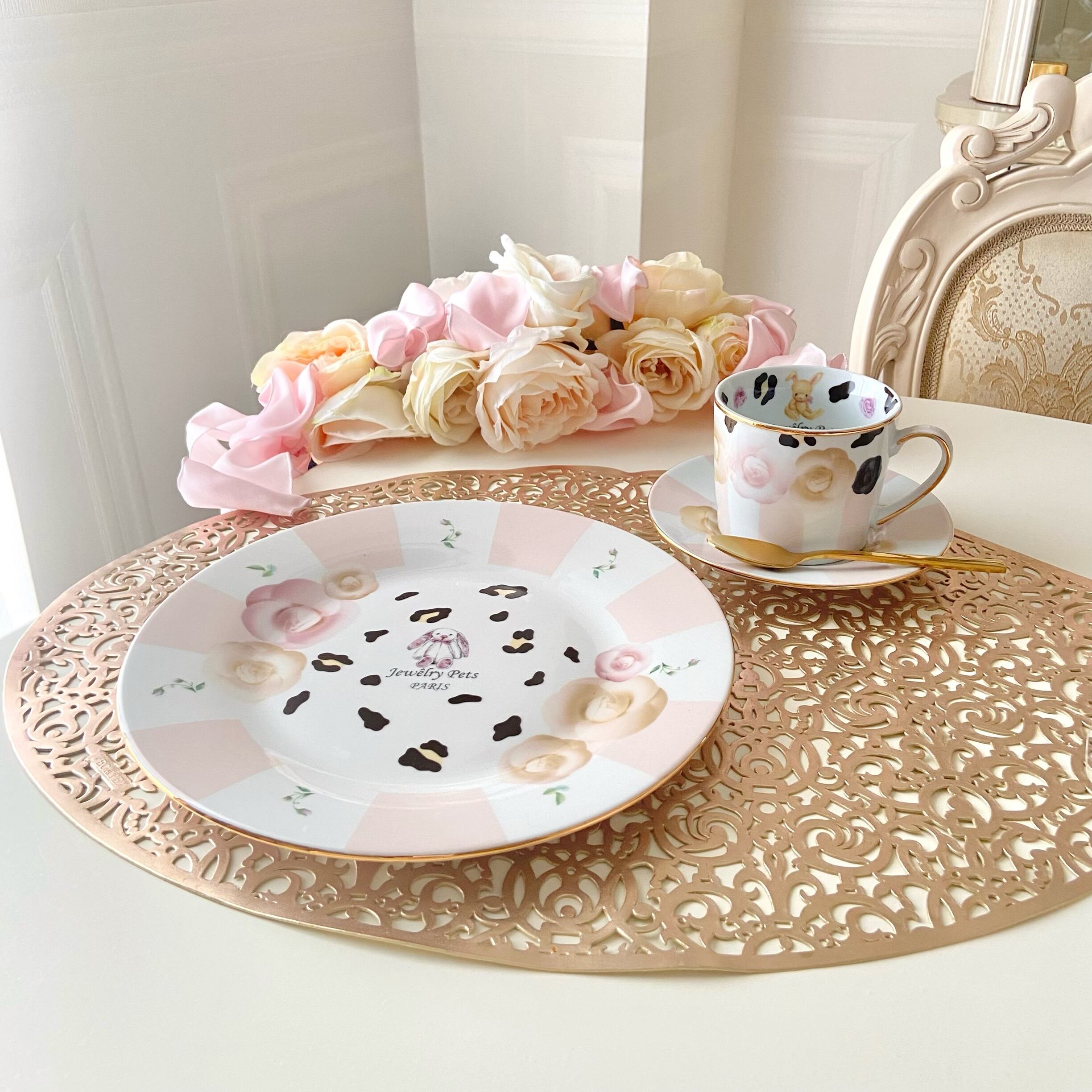 ほんわか、「プリンセスピンク」という名の優しいピンクを使用したリムプレートとカップアンドソーサーのセットです♡