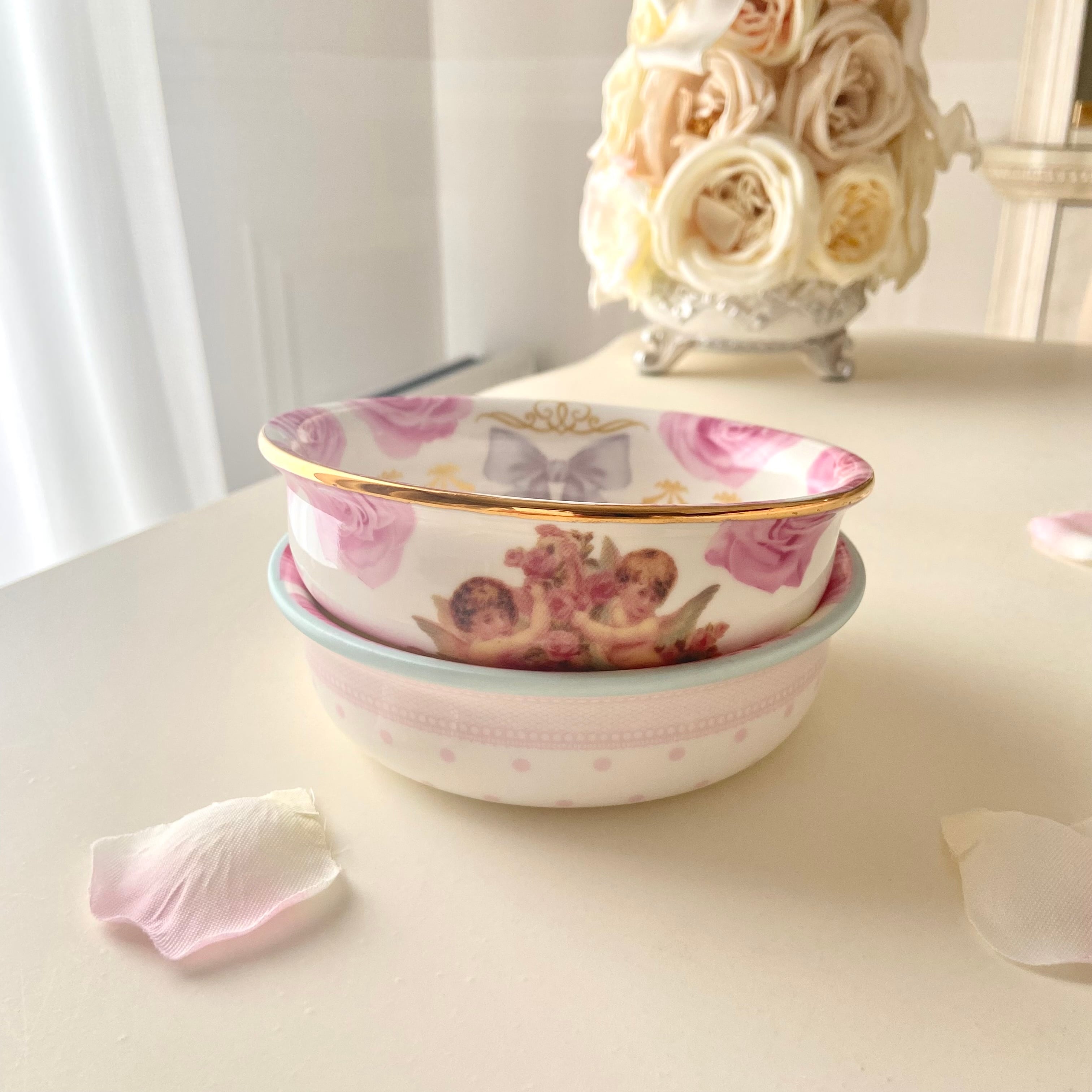 ・愛らしいbaby天使、たっぷりのリボンに豪華なゴールドのラインをあしらった【天使×ローズ】