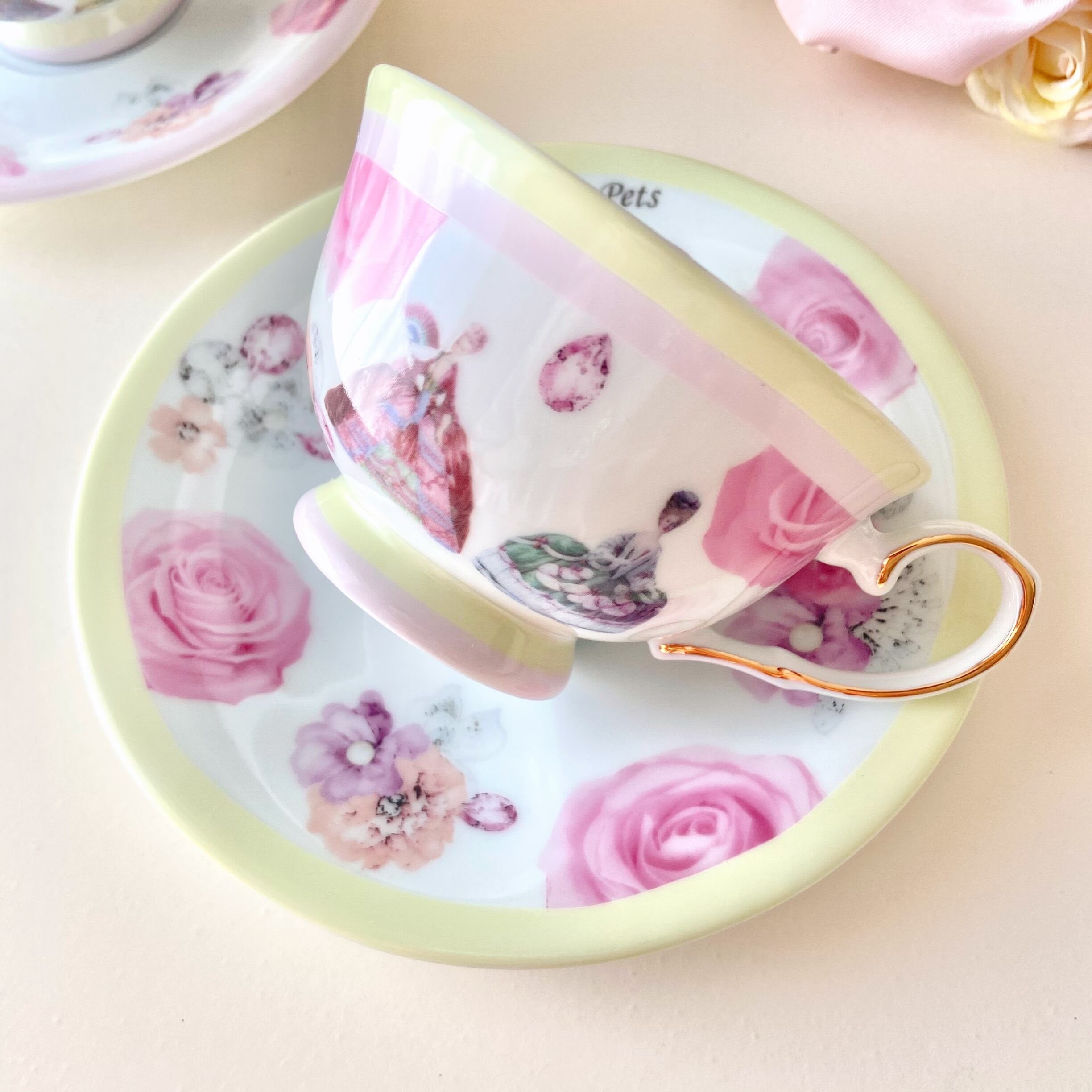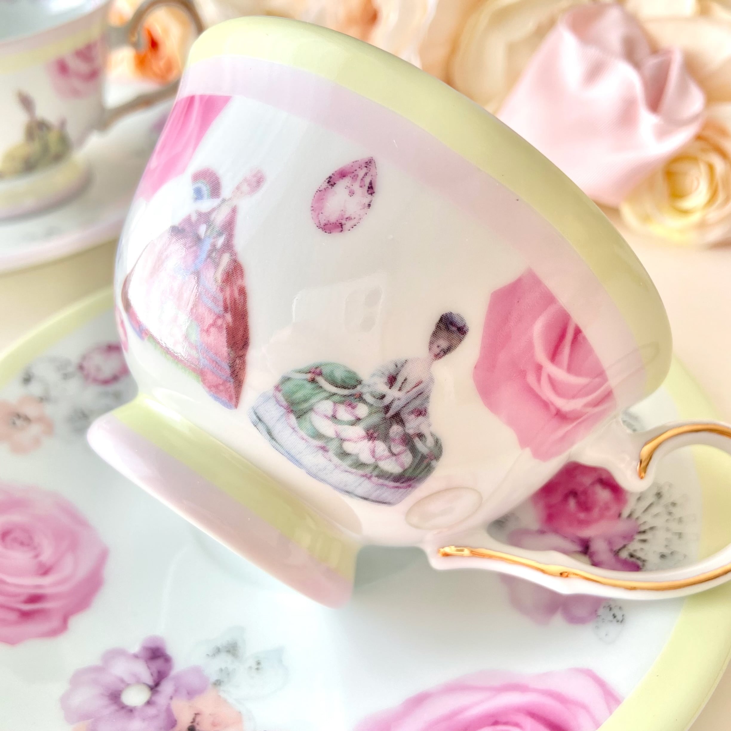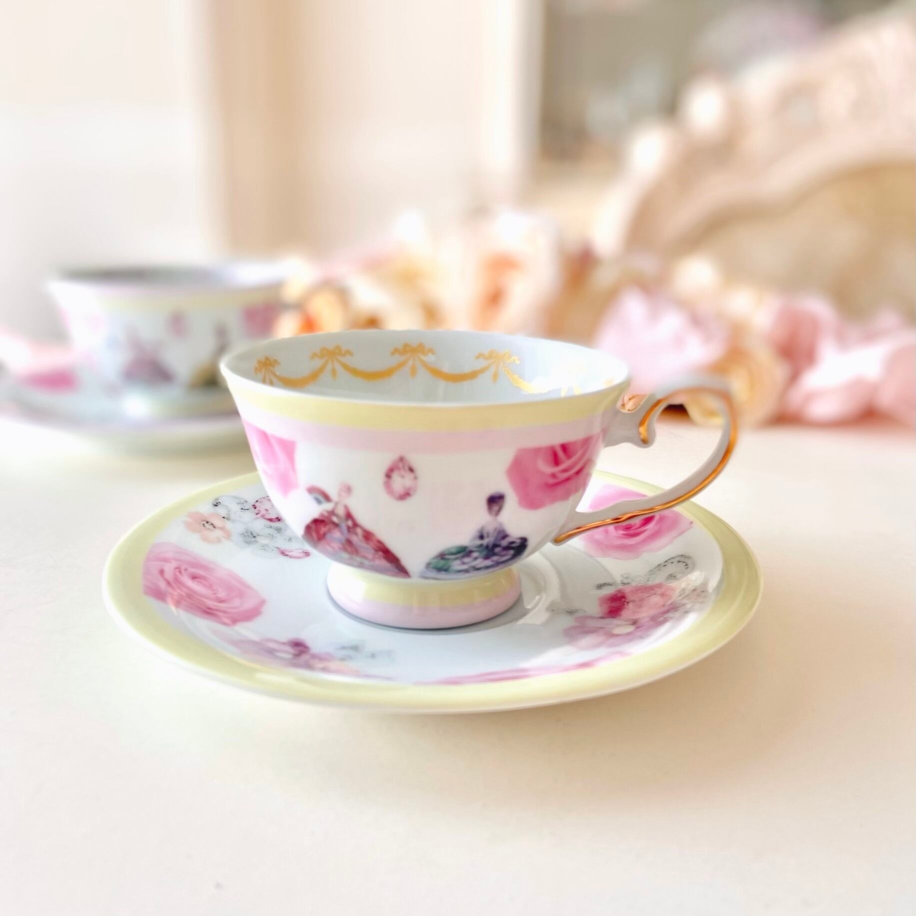 【アウトレット】宝石とマリーアントワネットのカップアンドソーサー(pink×green)
