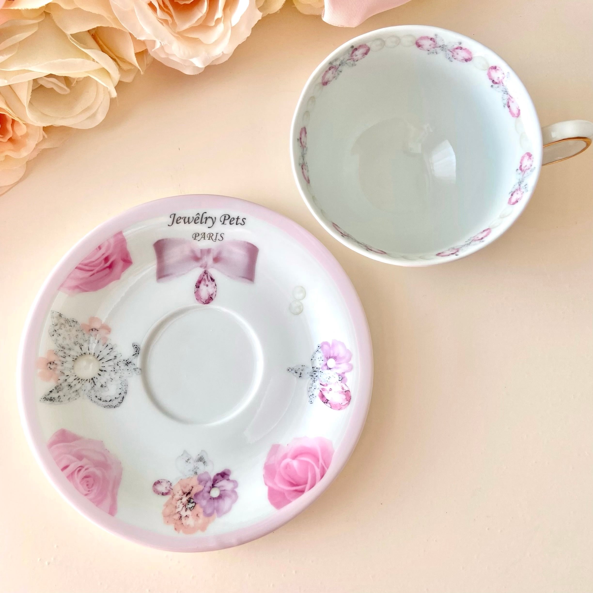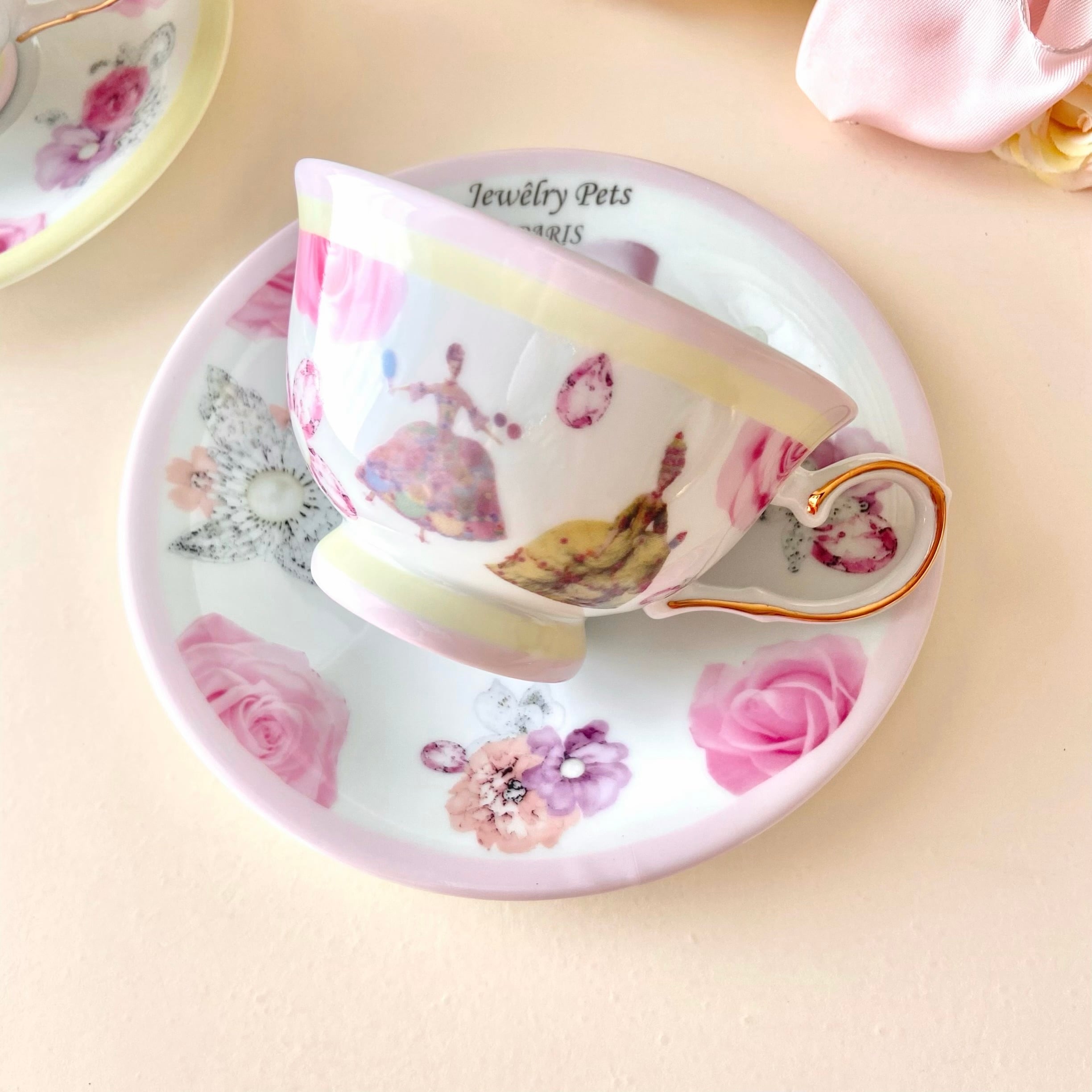 宝石とマリーアントワネットのカップアンドソーサー(pink×yellow)