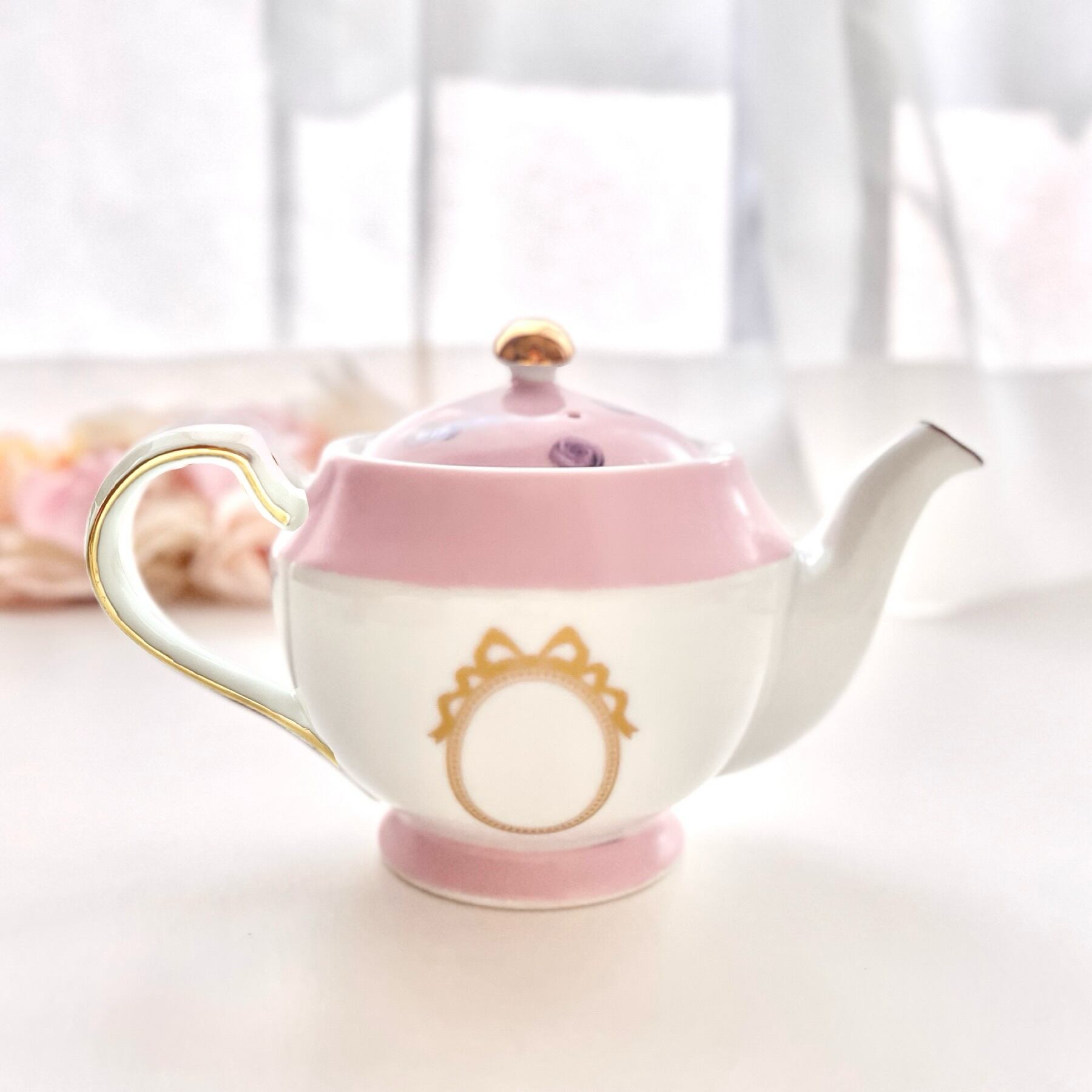 【イニシャル入れ無料】ローズが舞う マリーアントワネットの桜ピンクのティーポット 陶器 磁器